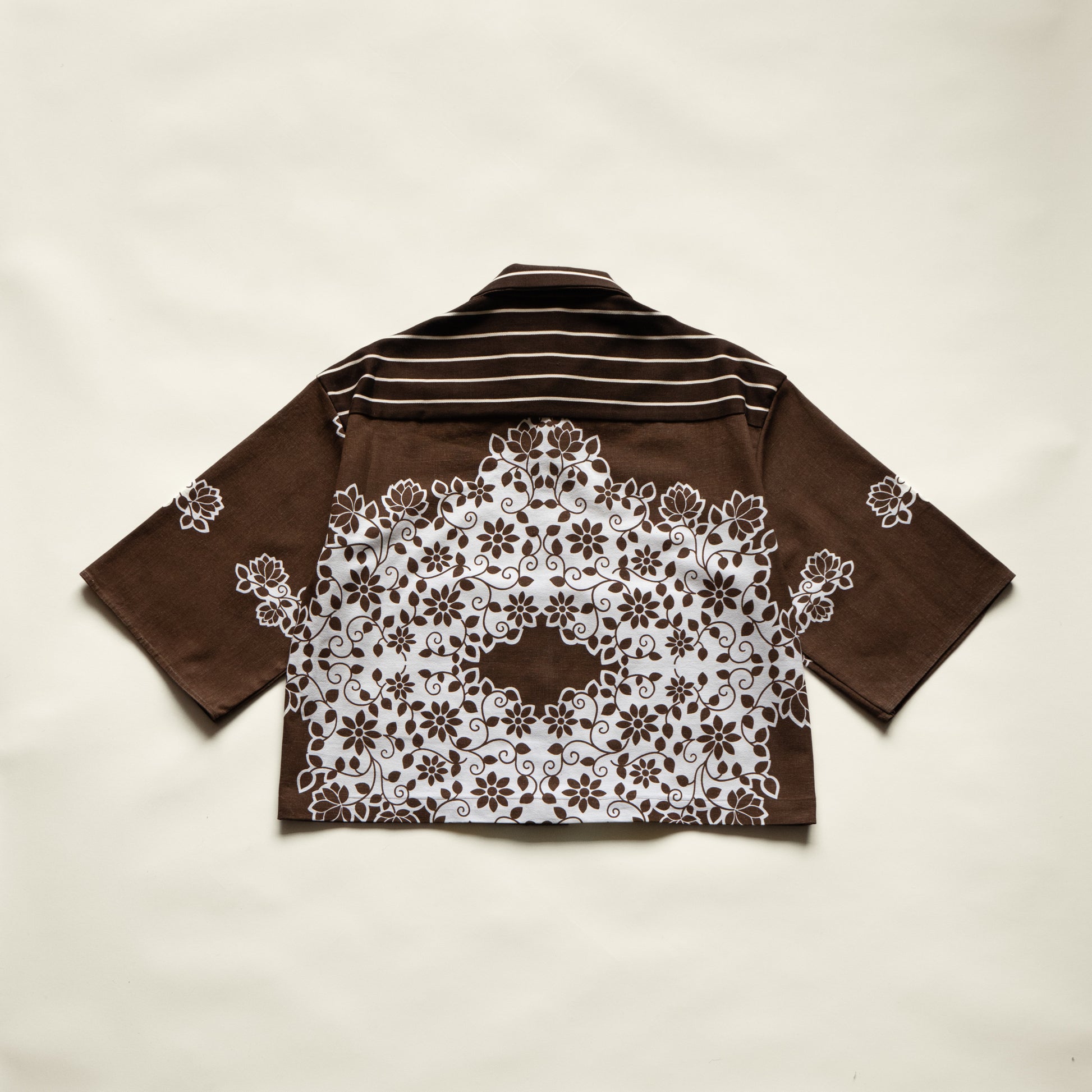 This version is made from a vintage tablecloth mixed with deadstock cotton twill and features reclaimed vintage buttons.