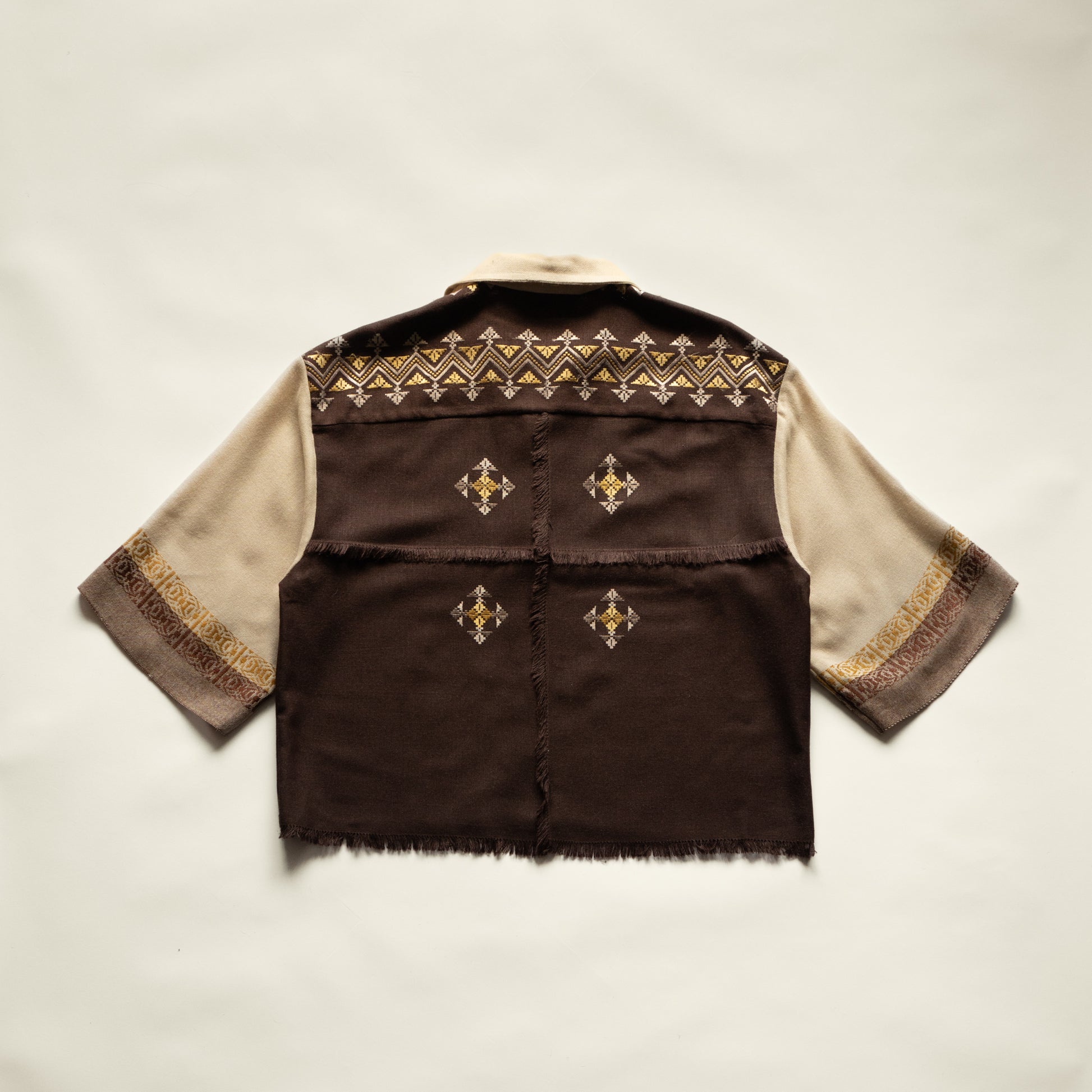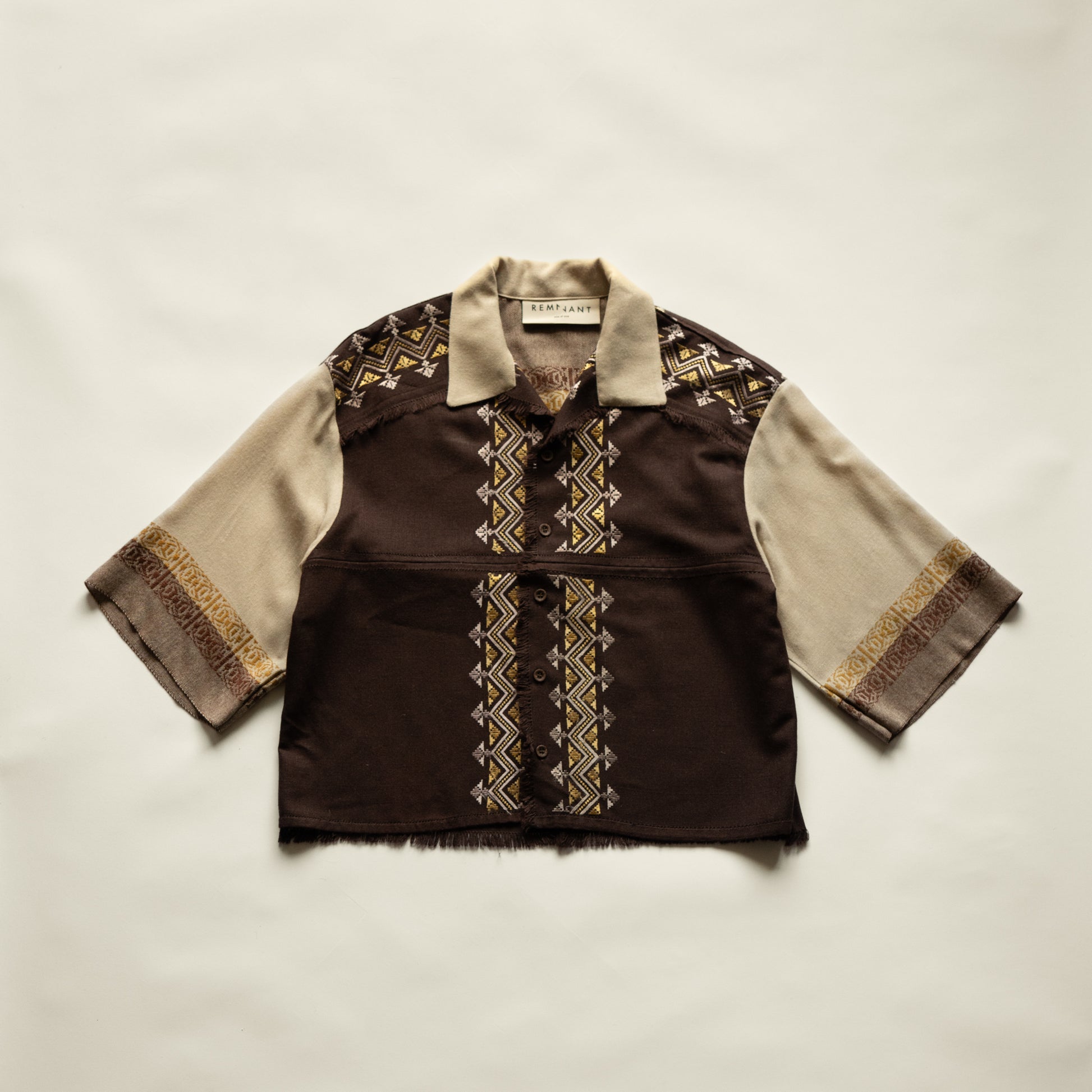 The Trellick Shirt is an oversized, boxy fit shirt with a dropped shoulder and back yoke detail. Designed with a camp collar and short wide sleeves, it blends retro-inspiration with a modern silhouette.